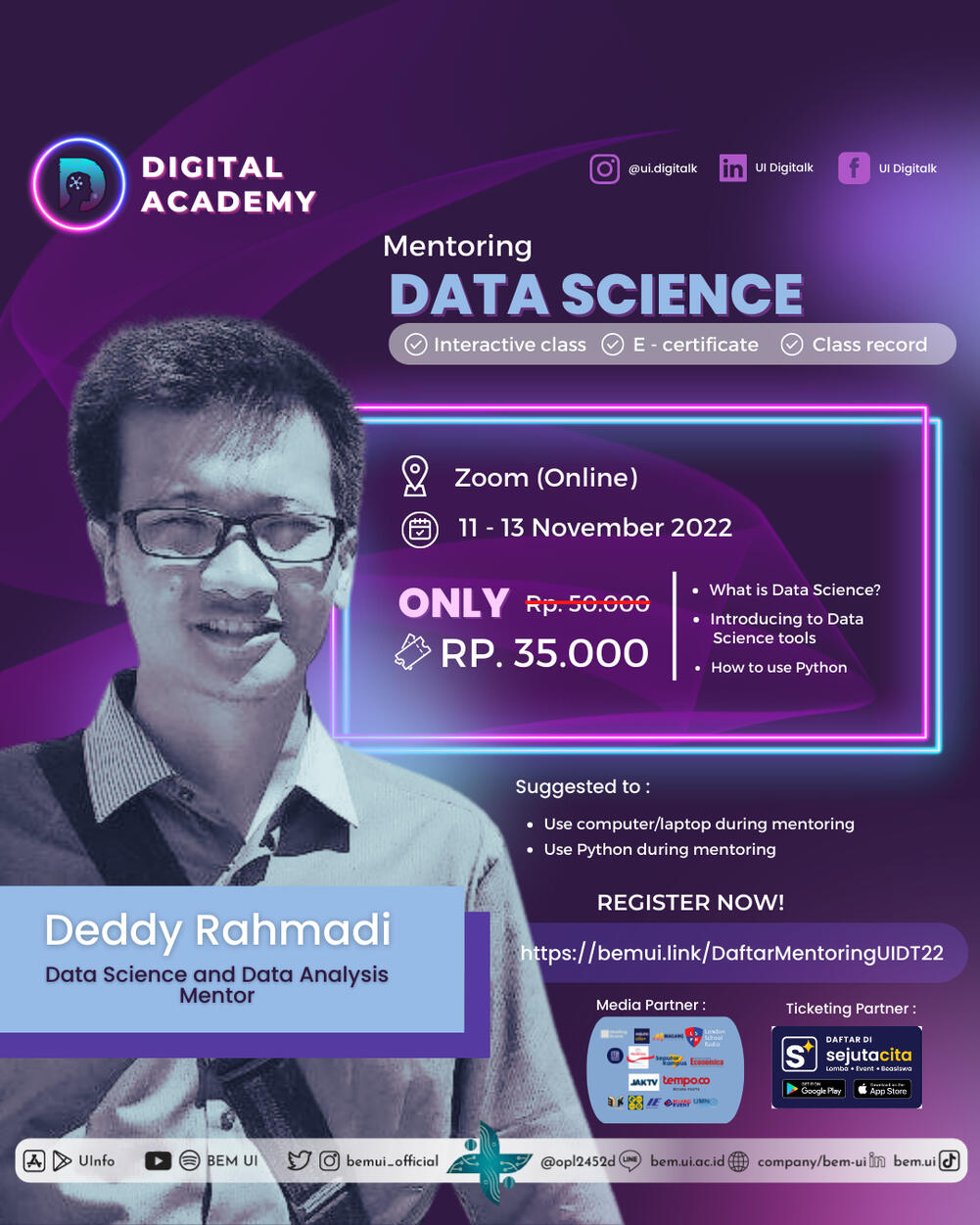 Improve your digital skill with us : Introducing to Data Science, Introducing Data Science Tools, How to use Phyton